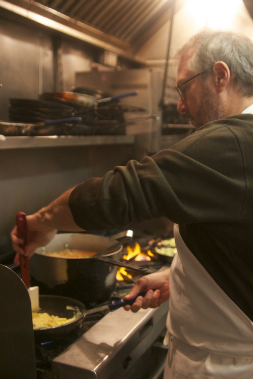 NK: Well I would cook at home. I would have culinary labs, six hour culinary classes. Let’s say we make a four course dinner: we would do a soup, an appetizer, a main dish. Whatever we made in class that day I’d would go home and take my dad to the supermarket or to the butcher and I’d make him buy the same exact thing so I’d practice the same exact meal I made at school at home, and it was with his money. I’d cook it, I’d make some mistakes. I wouldn’t really fuck it up; I had a knack for it, a love for it, but it was constantly going into the kitchen tweaking or to make it better or to figure out how the chef did it at school. That’s what I did for the first two years. I would be up to two or three in the morning making rye bread, sometimes it would come out and sometimes it didn’t.