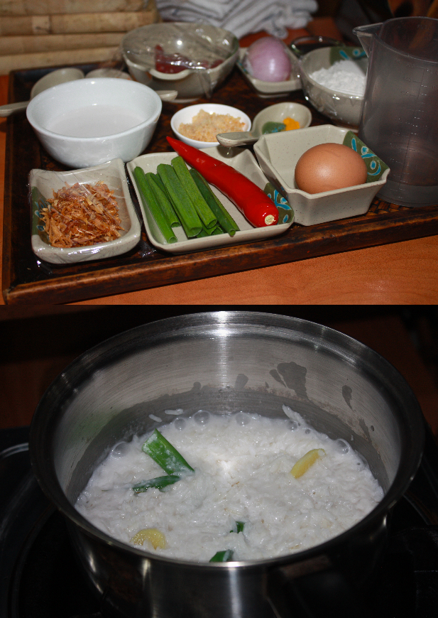 Serve hot with 4-5 slices of peeled and sliced cucumber, 2-3 tablespoons of deep fried peanuts, 1 hard boiled egg cut into small pieces, 2-3 tablespoons of deep fried anchovies, over sambal udang (see recipe below), or another main dish.