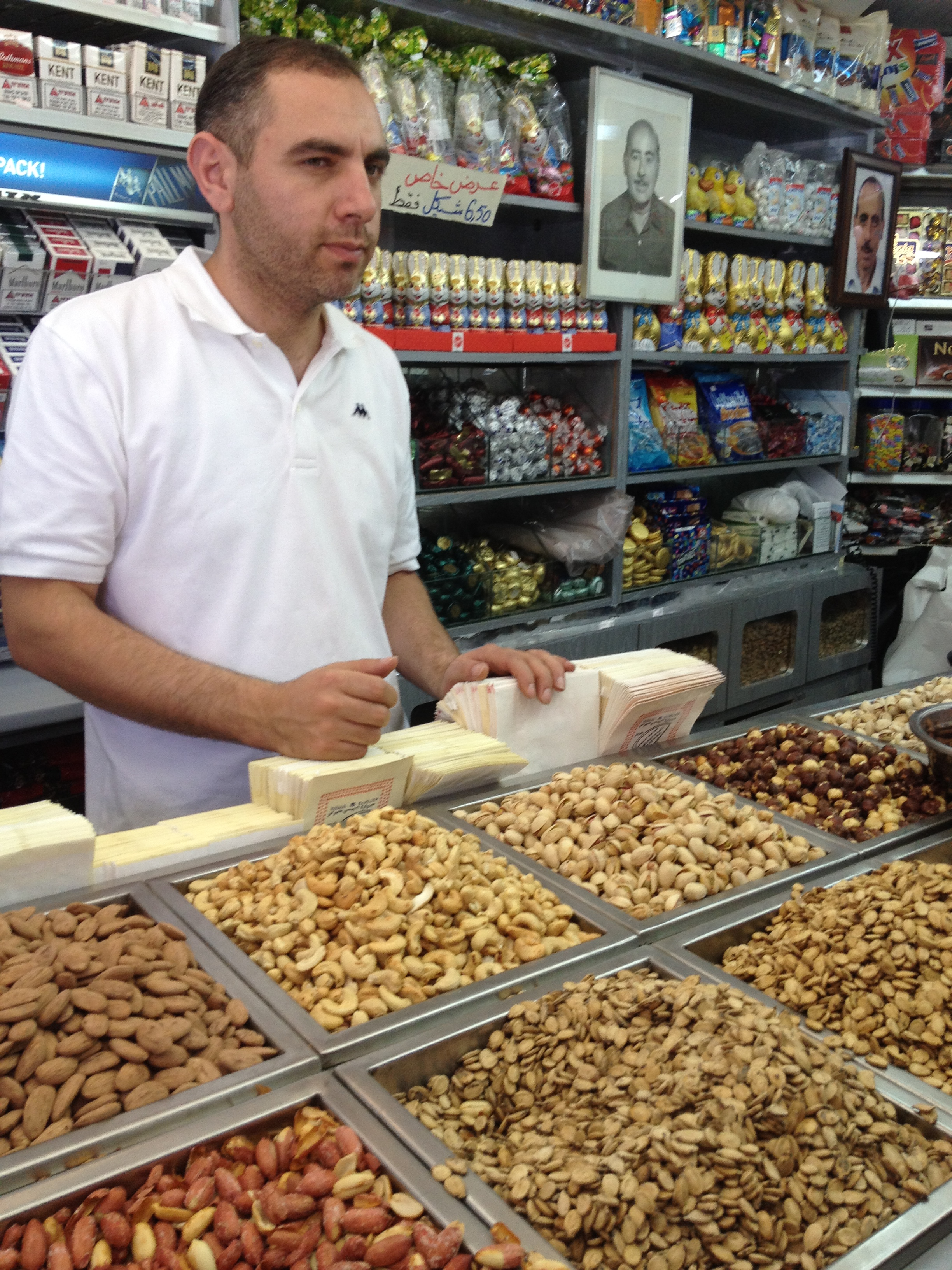 While I’m happy to have found delicious falafel, I’m removing my obsession with it from the forefront of my mind, and this has created more space for enjoying what truly does shock my taste buds into excitement. In the East Jerusalem food fair, for example, there are vendors selling salted and sweetened nuts. The almonds are at least twice the size as those in the States, thick yet almost soft as you bite into them, and lightly salted. Then there are the hazelnuts, also dwarfing their American cousins, savory and sweet at once, as well as cinnamon-y sweet candied nuts. The pistachios are my favorite, however; cracking them open reveals a vibrant green nut smeared with bright pink, highlighted by sparkling salt crystals. Never before have I seen pistachios that are such a natural work of art (but not too beautiful to eat, of course).