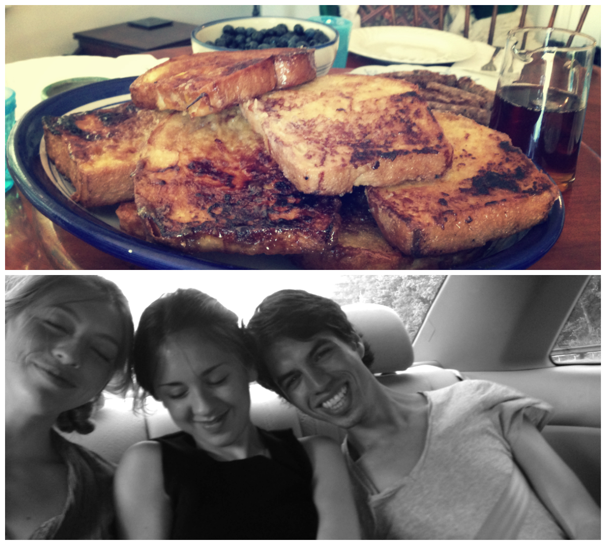 On Sunday, we all woke up in the late-morning and moseyed off to the local farmers market, where brioche from a local bakery inspired Matt, former president of the Columbia Culinary Society, to make his signature French toast, or as he likes to call it, “fried egg bread.” Now, Matt’s fried egg bread isn’t your typical frying of egg-soaked bread in a little bit of butter which you can top with butter and douse in maple syrup after cooking —Matt’s fried egg bread must be fried in an absolutely sinful amount of butter and sugar in order to create a crunchy, caramelized coating on each slice. Topped with the blueberries that we had picked from the day before, this French toast was particularly memorable. Filled with sweet, sugary goodness, we spent the rest of the day hanging out on my deck under a cloudless summer sky.