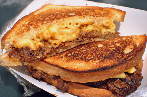 H-Town StrEATS is a food truck serving globally inspired New American food. Their best seller, the Shorty Mac Grilled Cheese is a grilled cheese stuffed with short rib and macaroni and cheese. The short rib packs the strongest flavor in the sandwich, while the mild-flavored mac and cheese—cooked al dente—gives bite. The cheese slice binds the sandwich together. The Shorty Mac Grilled Cheese may sound like carb-overload, but in execution, it’s an ingeniously simple combination.