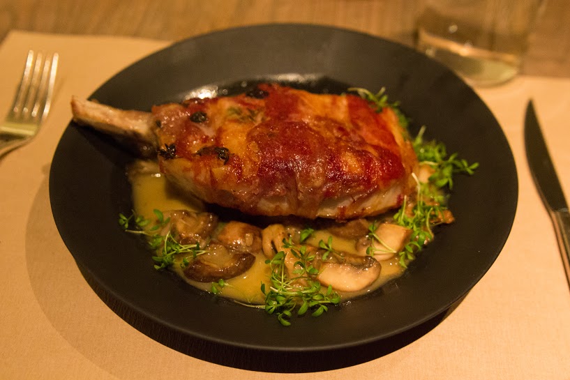 Prosciutto-wrapped Pork Chop with Mushrooms. (Not on the Restaurant Week menu, but it’s a good picture, no?)