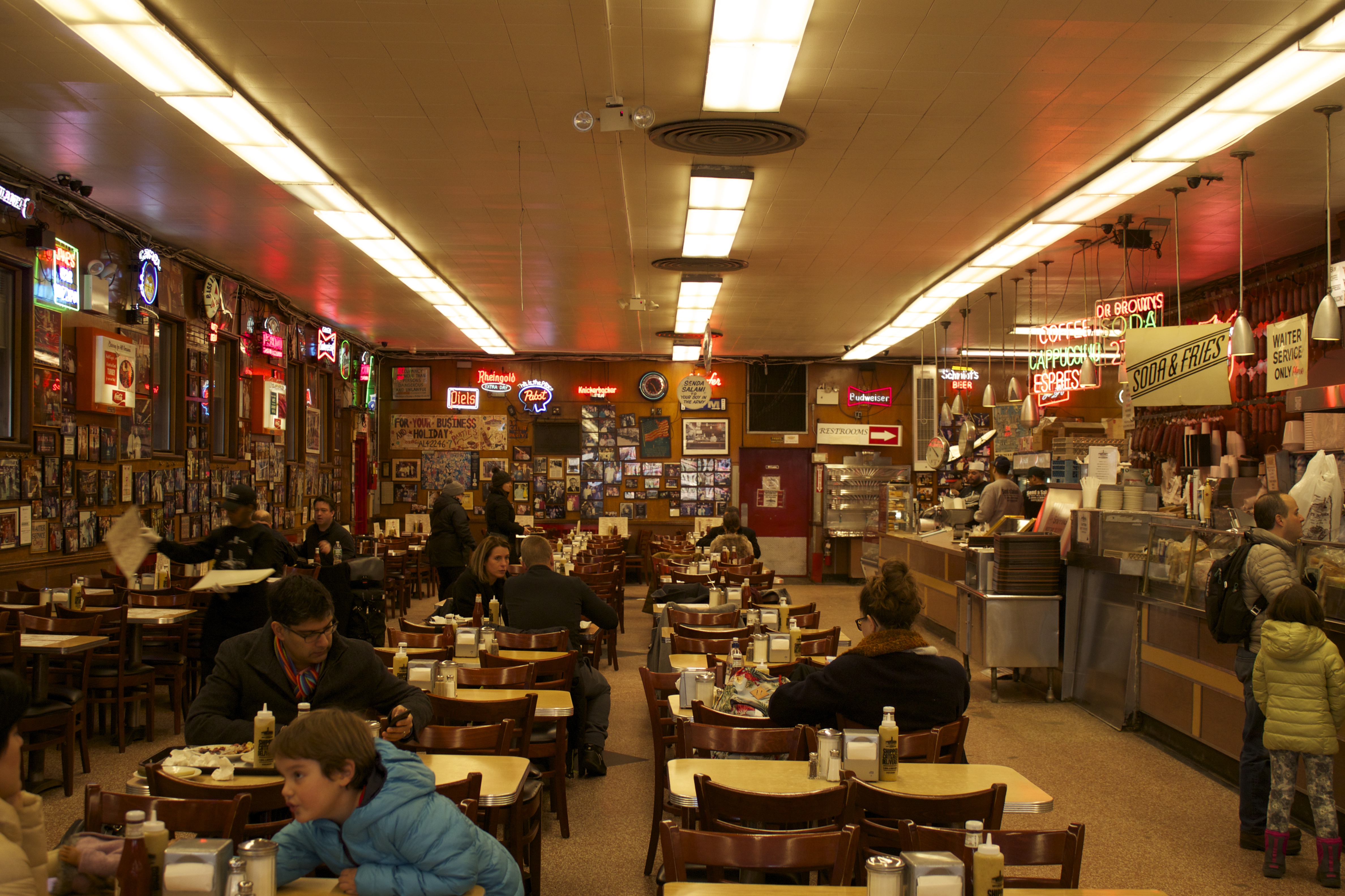 But Katz’s appeal goes further than the promise of a delicious mile-high sandwich or chance to see the setting of a famous movie scene (re: Harry Met Sally’s infamous “I’ll have what she’s having!” line). Katz’s is a culture unto itself. The counter where you order those giant sandwiches is at least fifty feet long. As you lean over to talk to the Katz’s employees, you’ll notice that behind you are rows of hanging meats along with pictures of celebrities who have visited the deli. Not much has changed about the appearance since Katz’s was built in 1946, when it served the Jewish immigrants that inhabited the neighborhood. It is still, and always will be, a classic New York City spot.